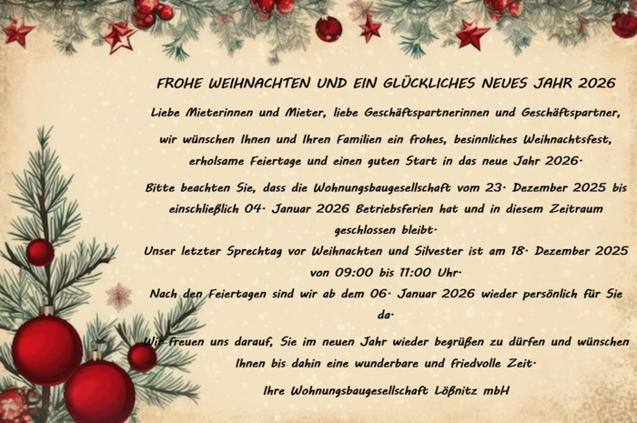 Wir, die Wohnungsbaugesellschaft Lößnitz mbH, welche zu den kommunalen Unternehmen gehört, wurde 1992 gegründet. Im Besitz befinden sich zahlreiche Gebäude sowie Flächen in und um Lößnitz, welche von unserem Unternehmen selbst errichtet, betreut, bewirtschaftet und verwaltet werden.